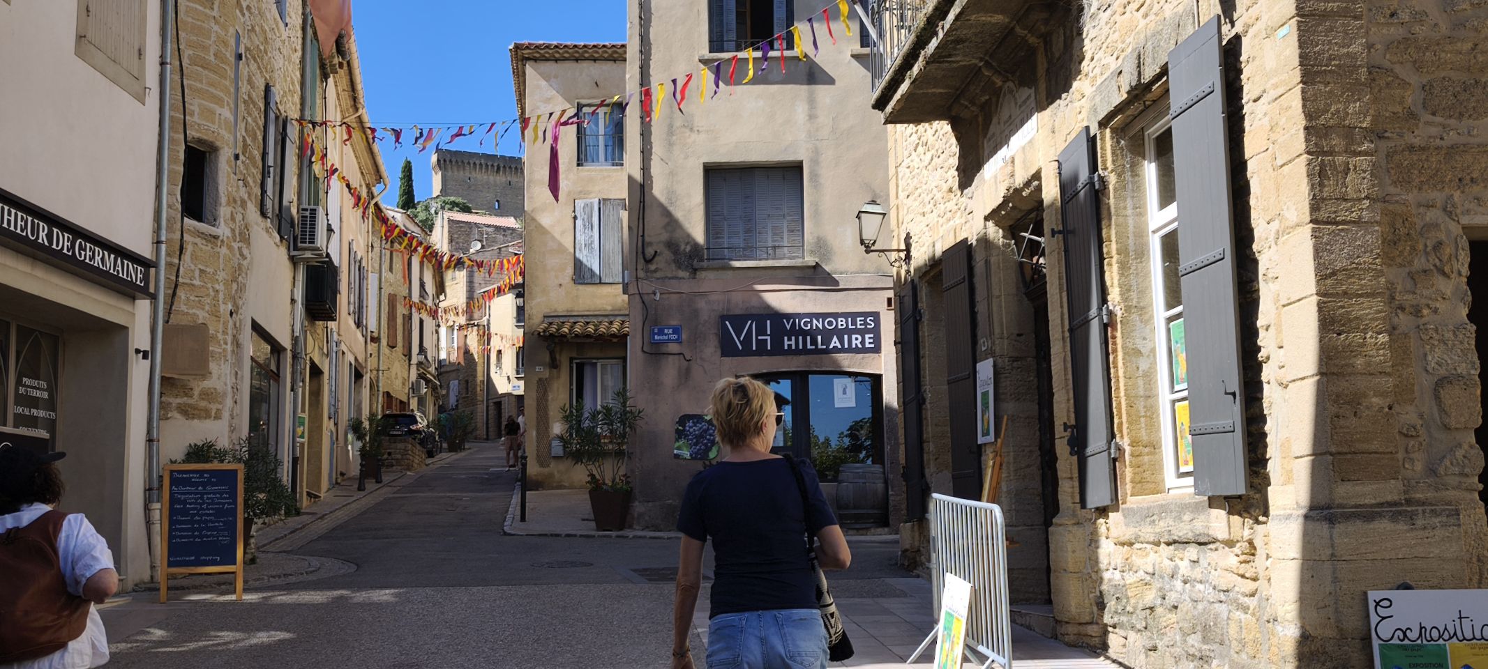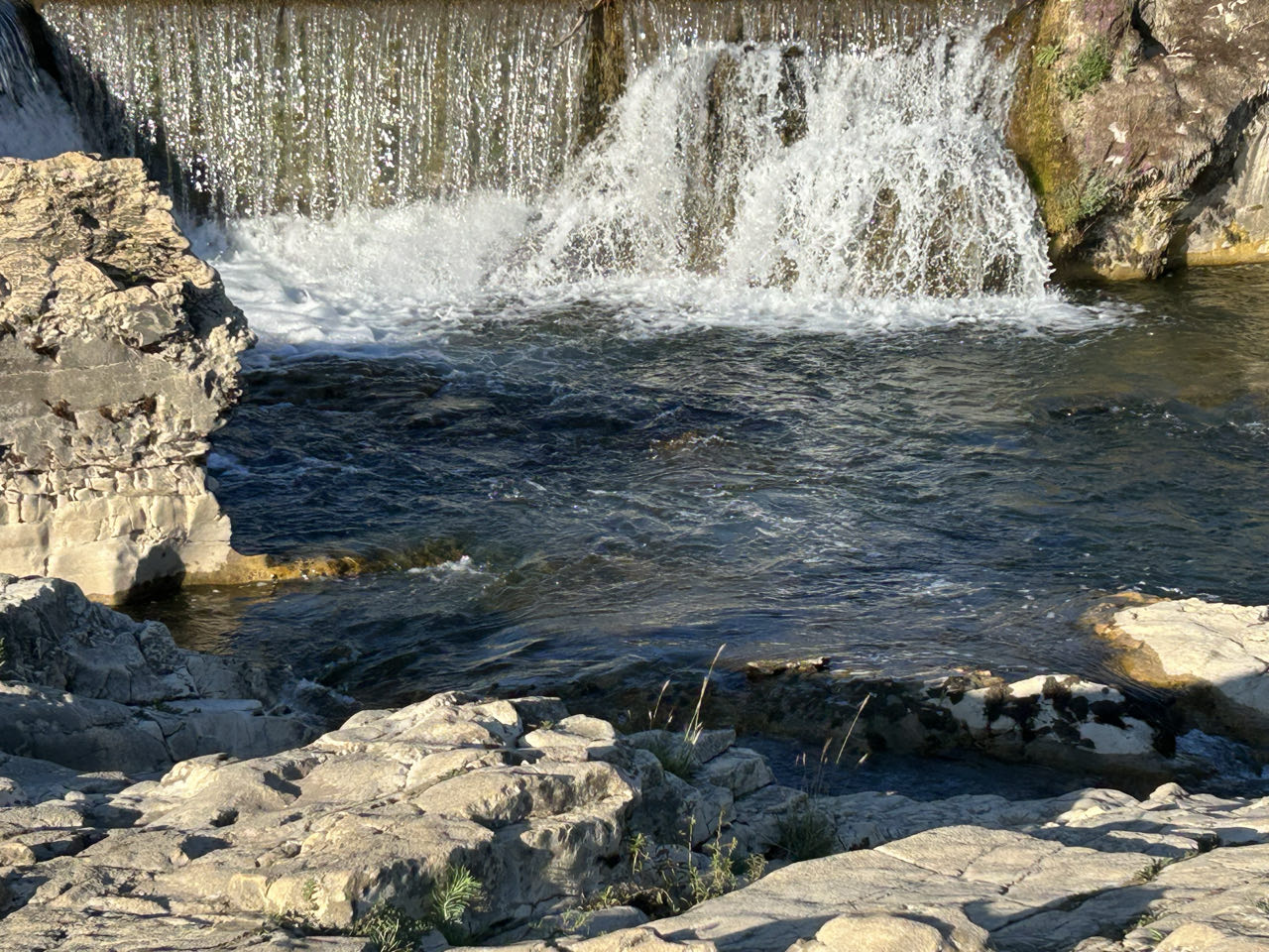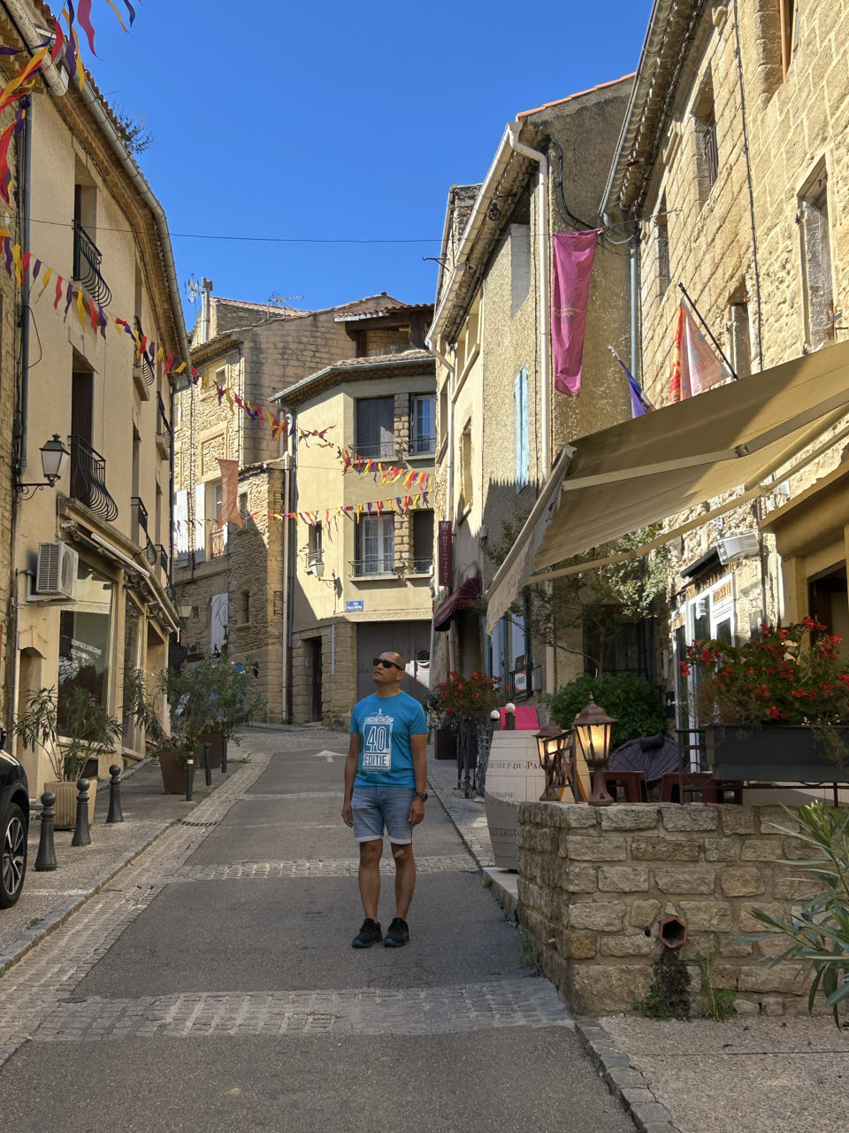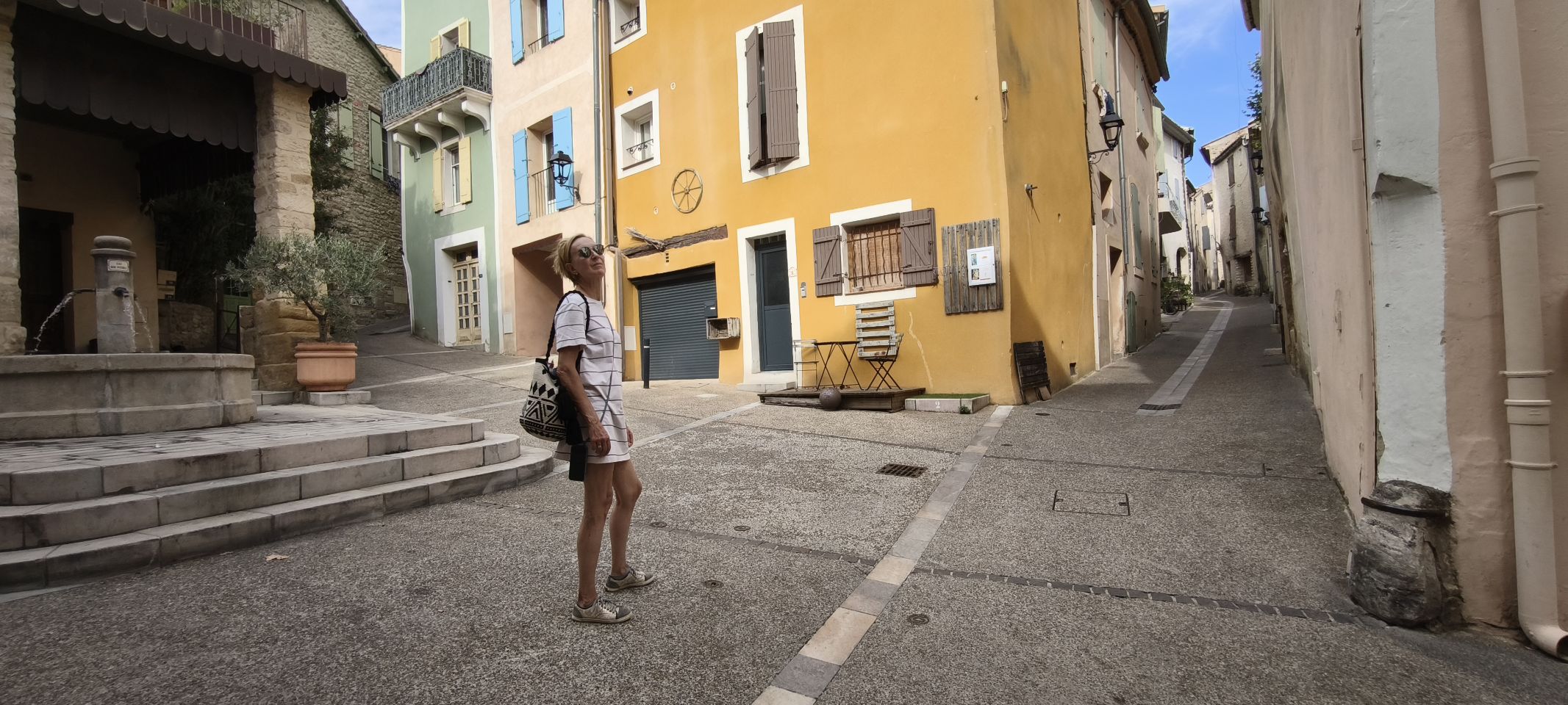 Als de zon achter de bomen zakt lopen we naar de watervallen twee kilometer verderop. We komen langs het schilderachtige dorpje La Roque-sur-Cèze, Cézanne zou er wel raad mee hebben geweten.