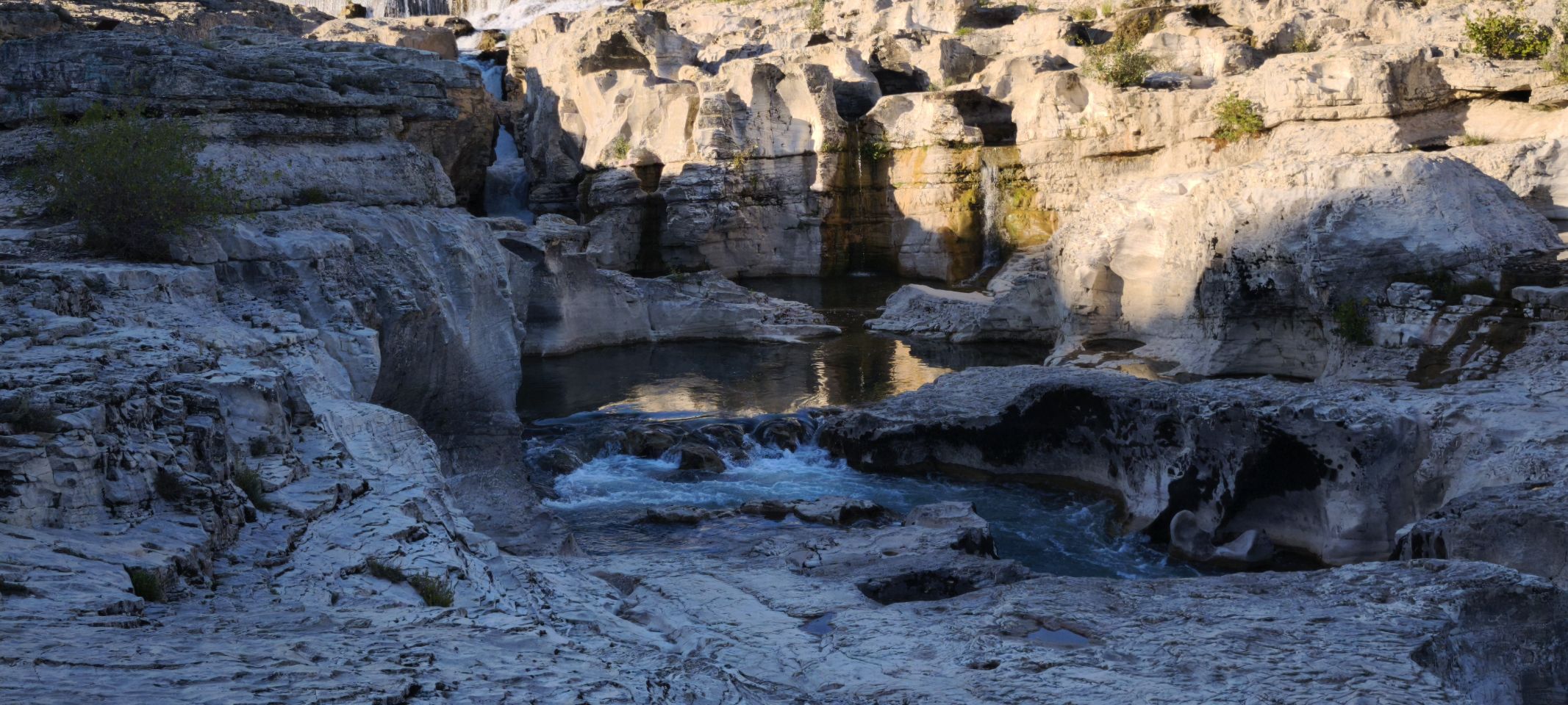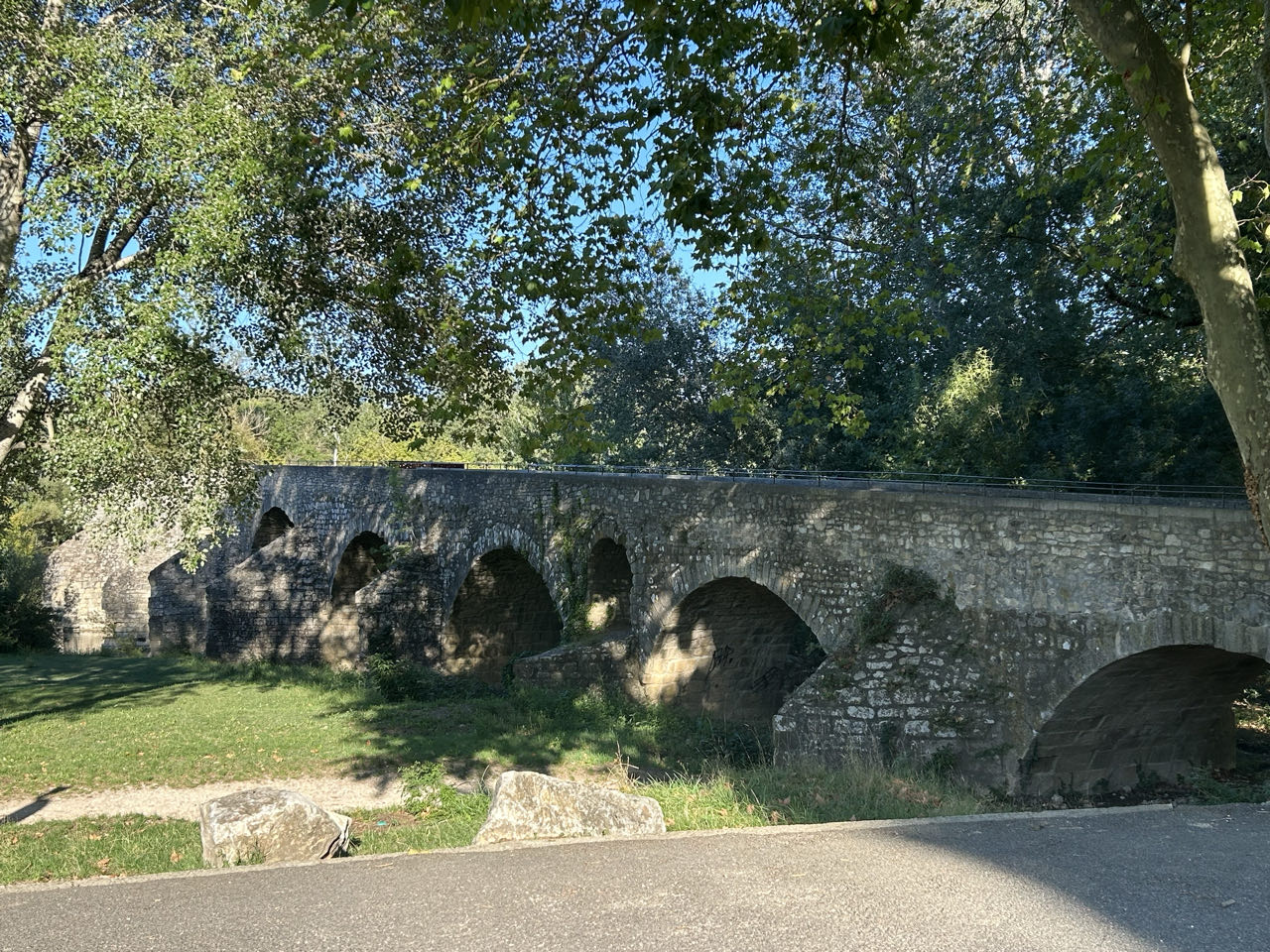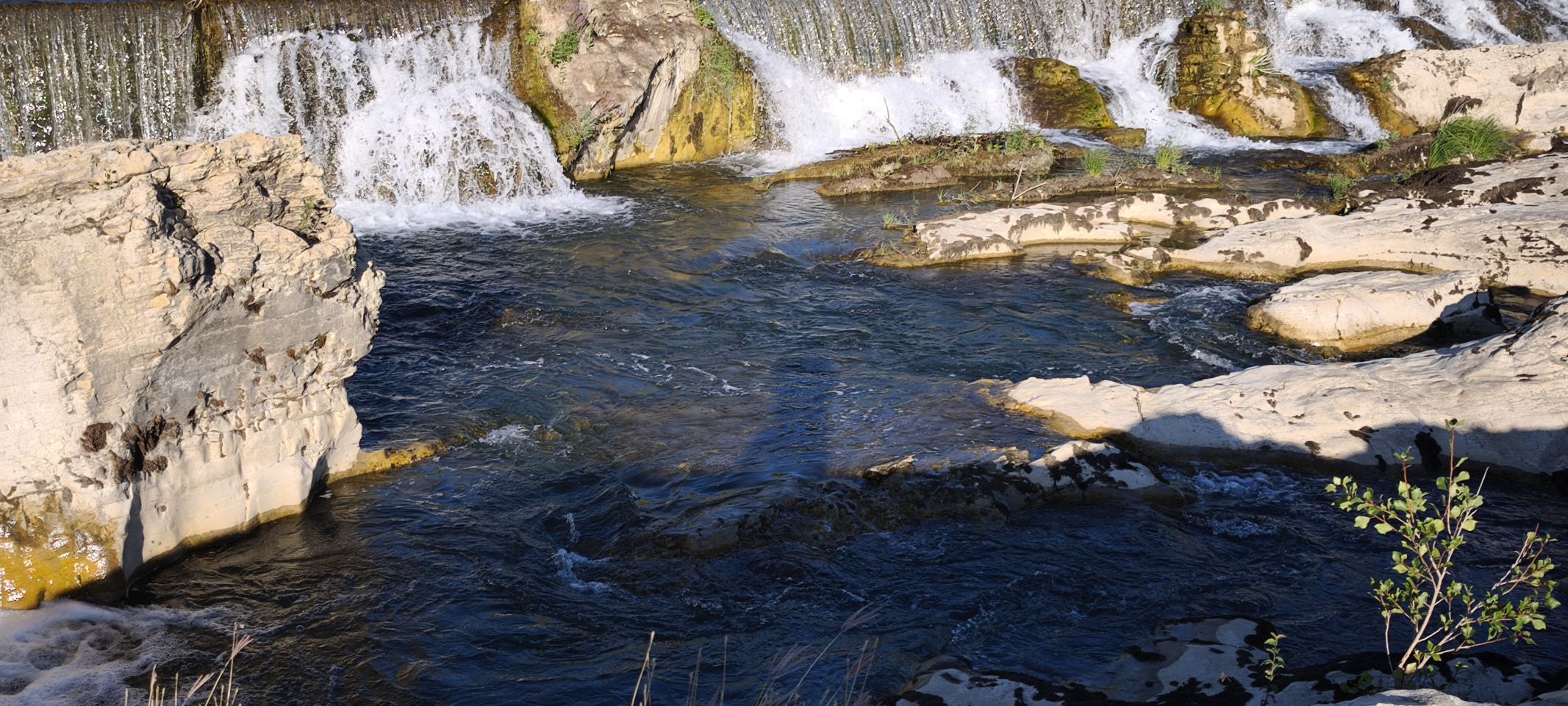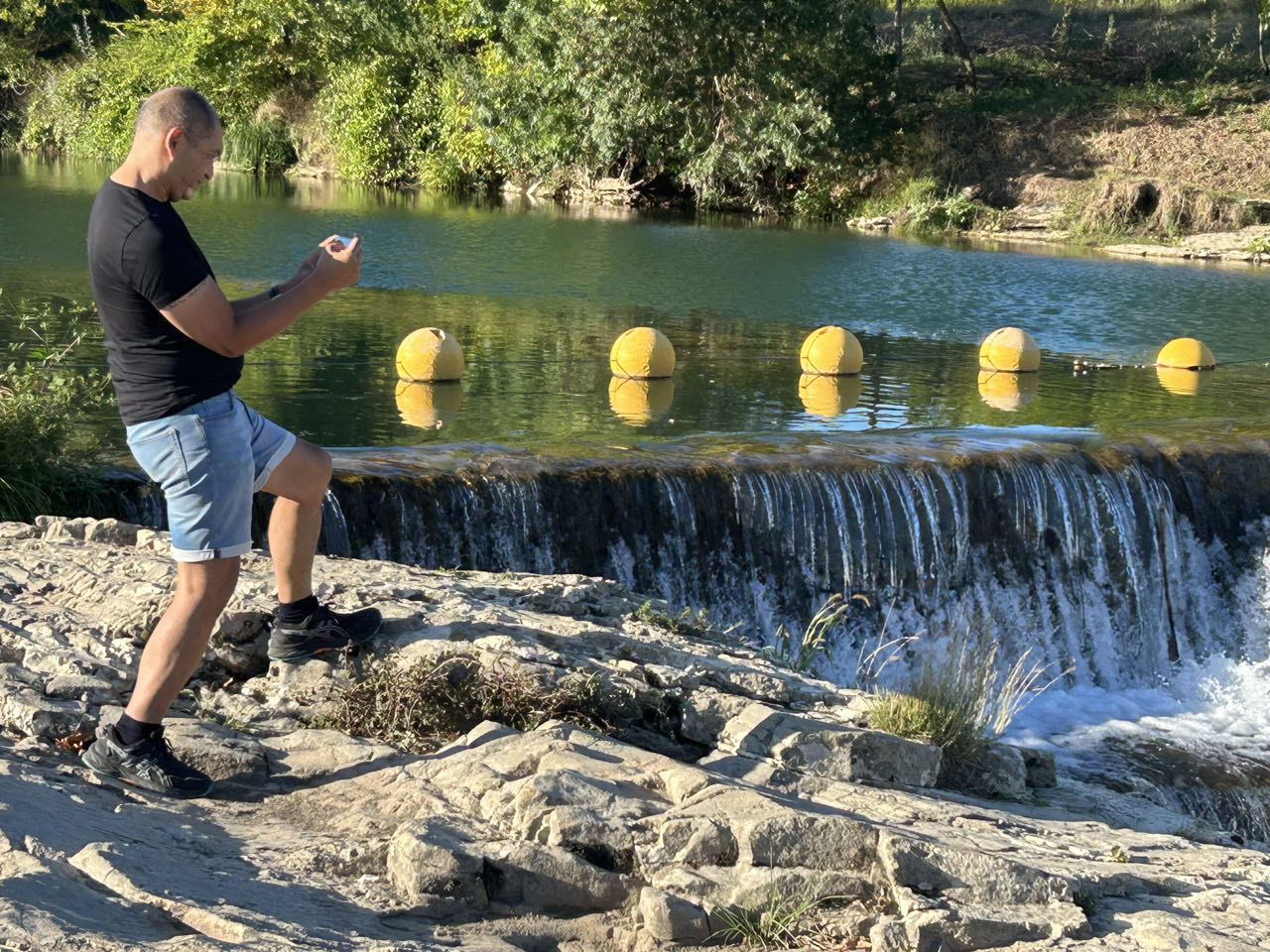 Als de zon achter de bomen zakt lopen we naar de watervallen twee kilometer verderop. We komen langs het schilderachtige dorpje La Roque-sur-Cèze, Cézanne zou er wel raad mee hebben geweten.