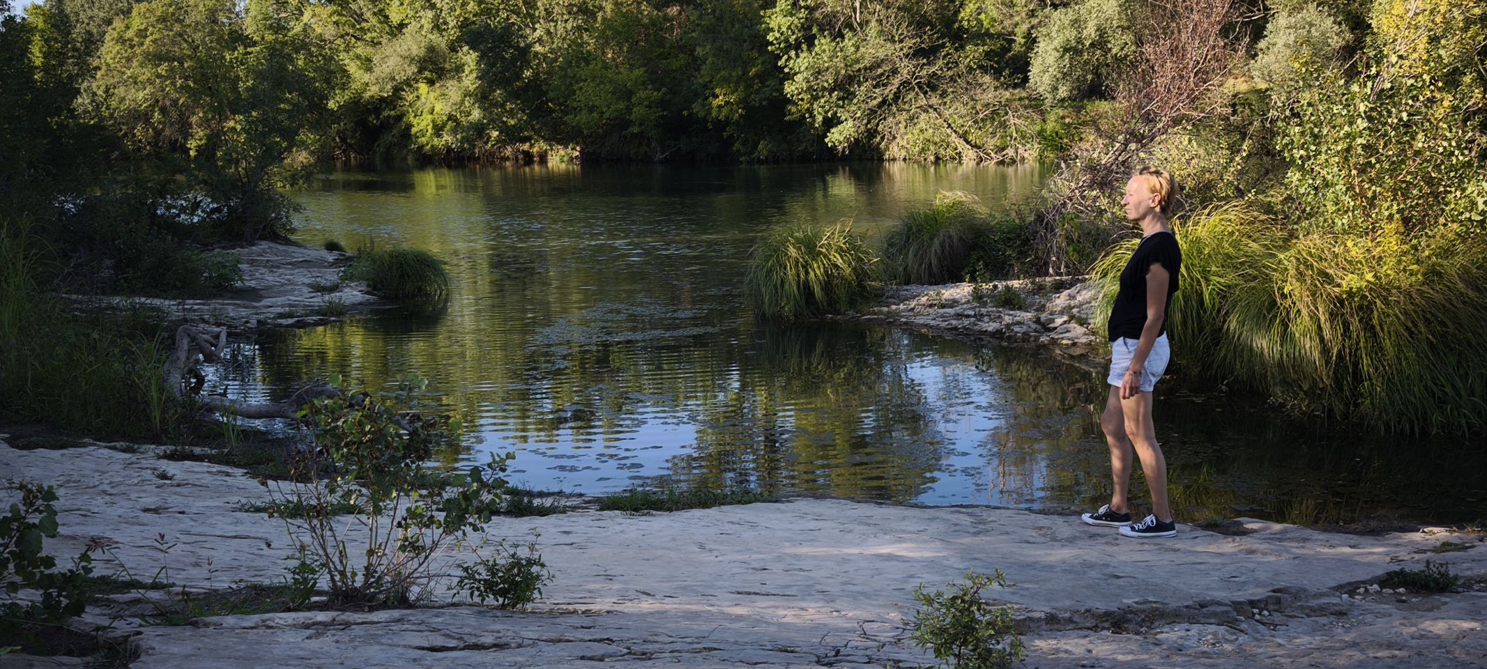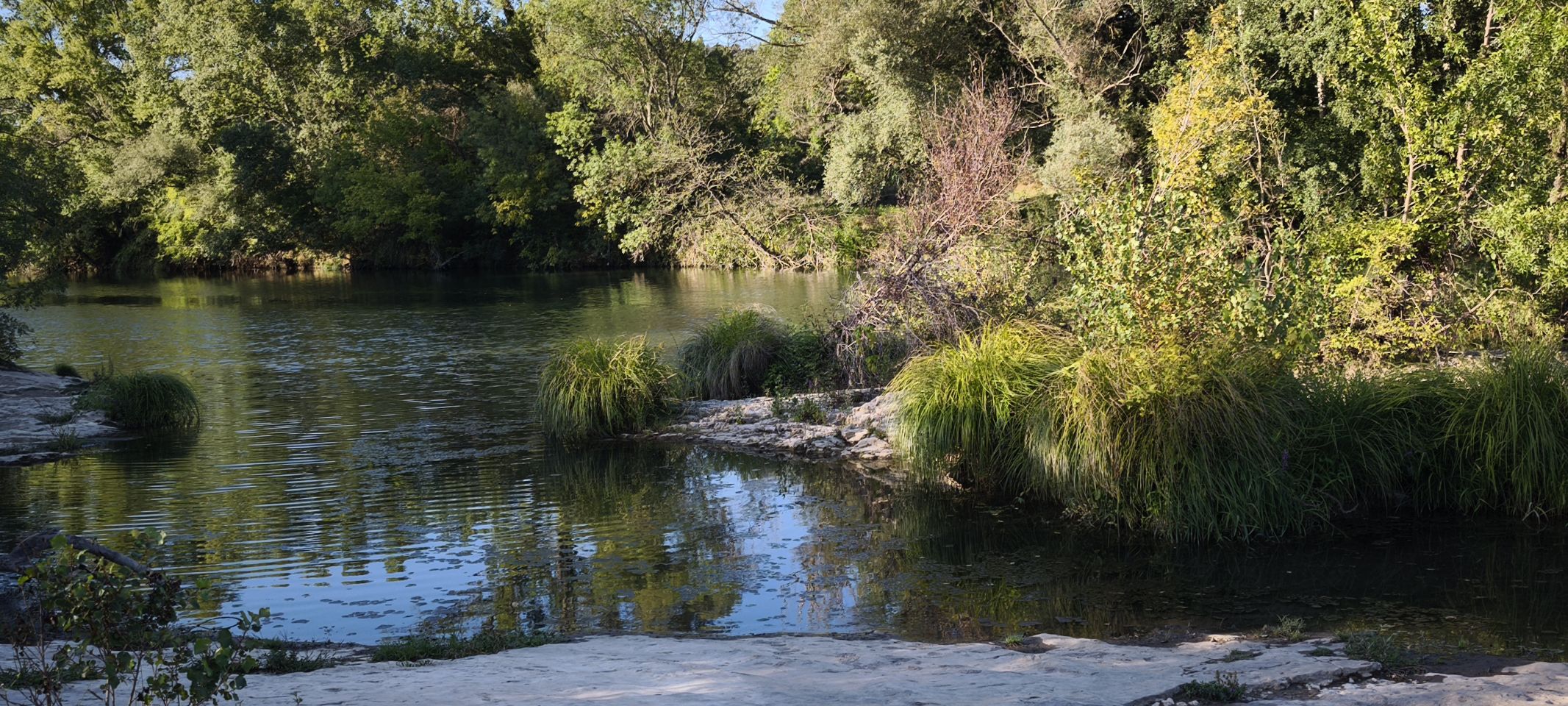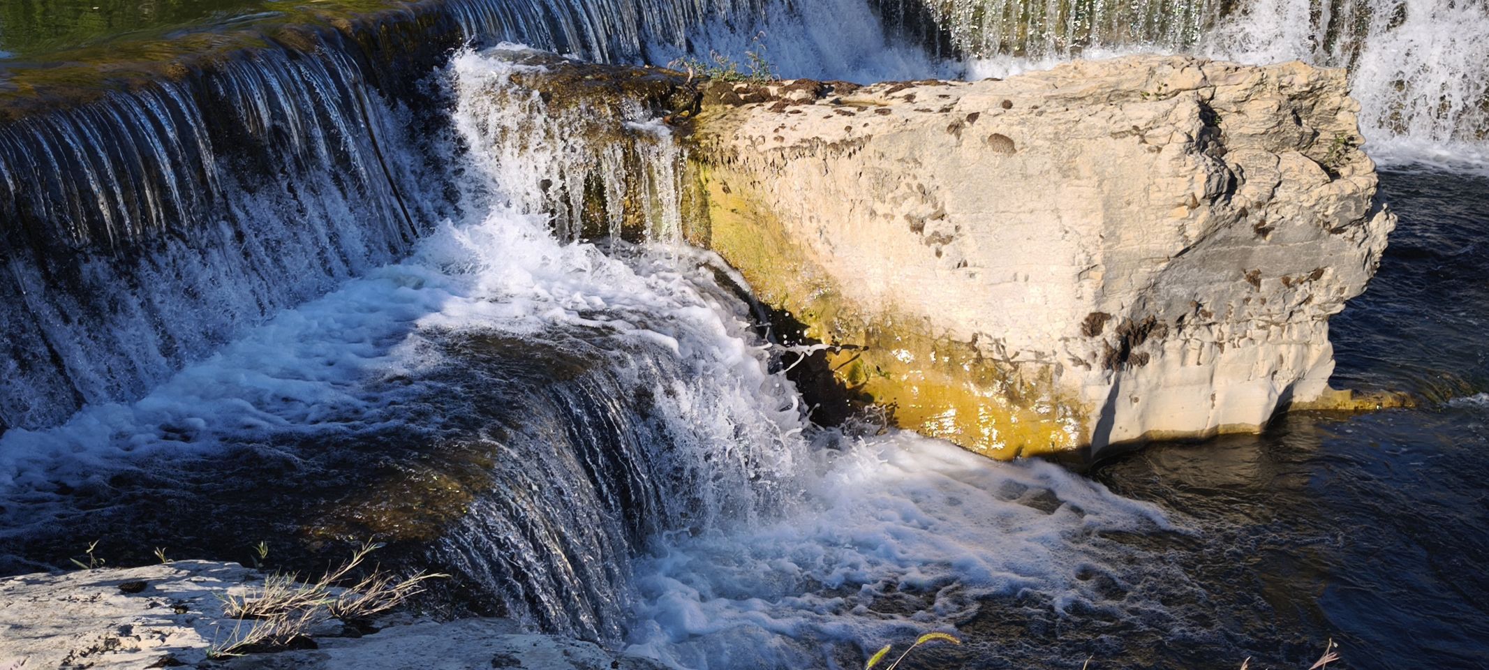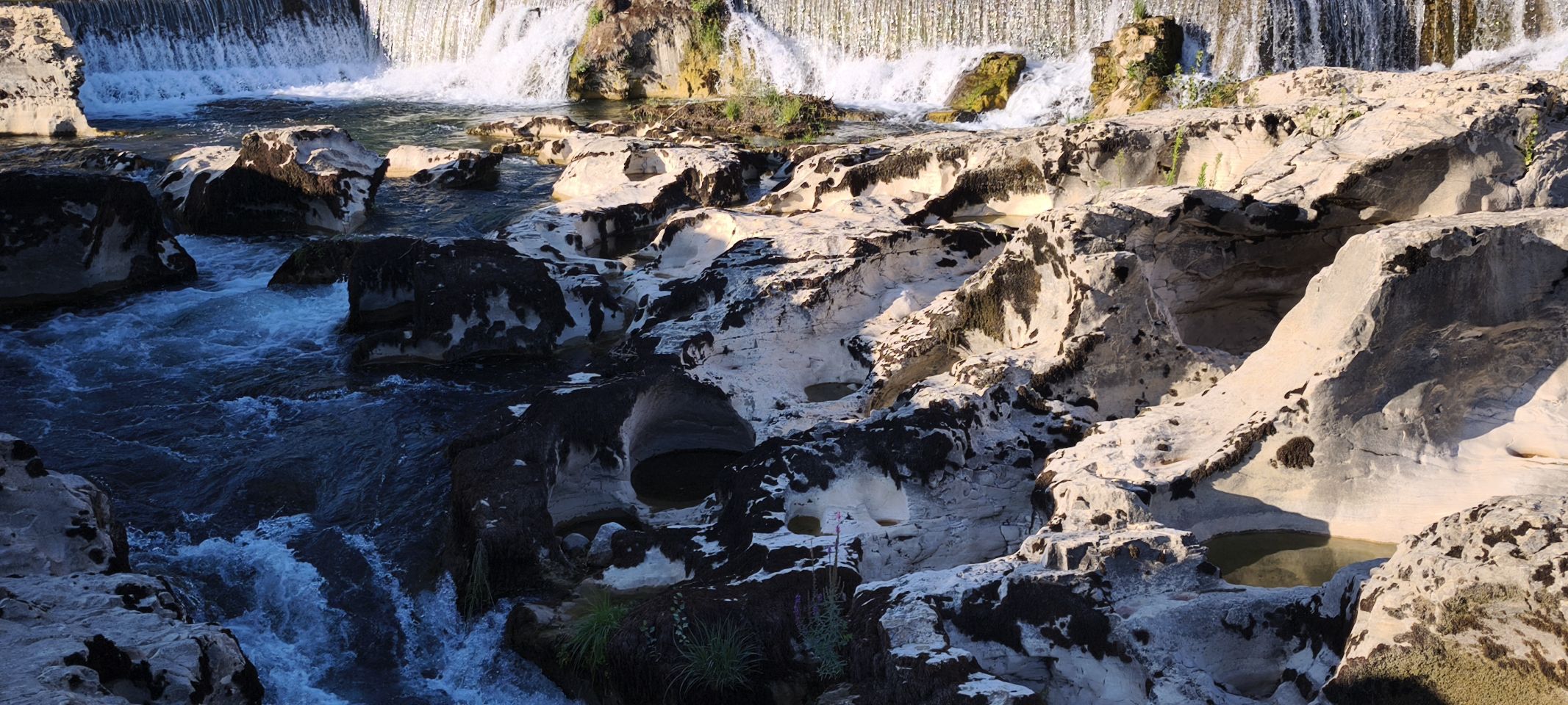 Als de zon achter de bomen zakt lopen we naar de watervallen twee kilometer verderop. We komen langs het schilderachtige dorpje La Roque-sur-Cèze, Cézanne zou er wel raad mee hebben geweten.