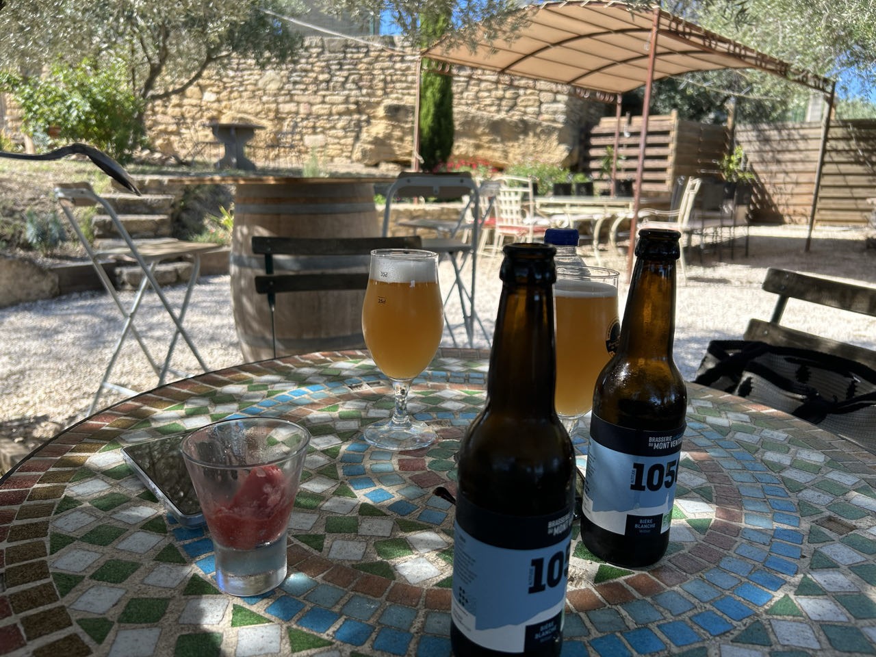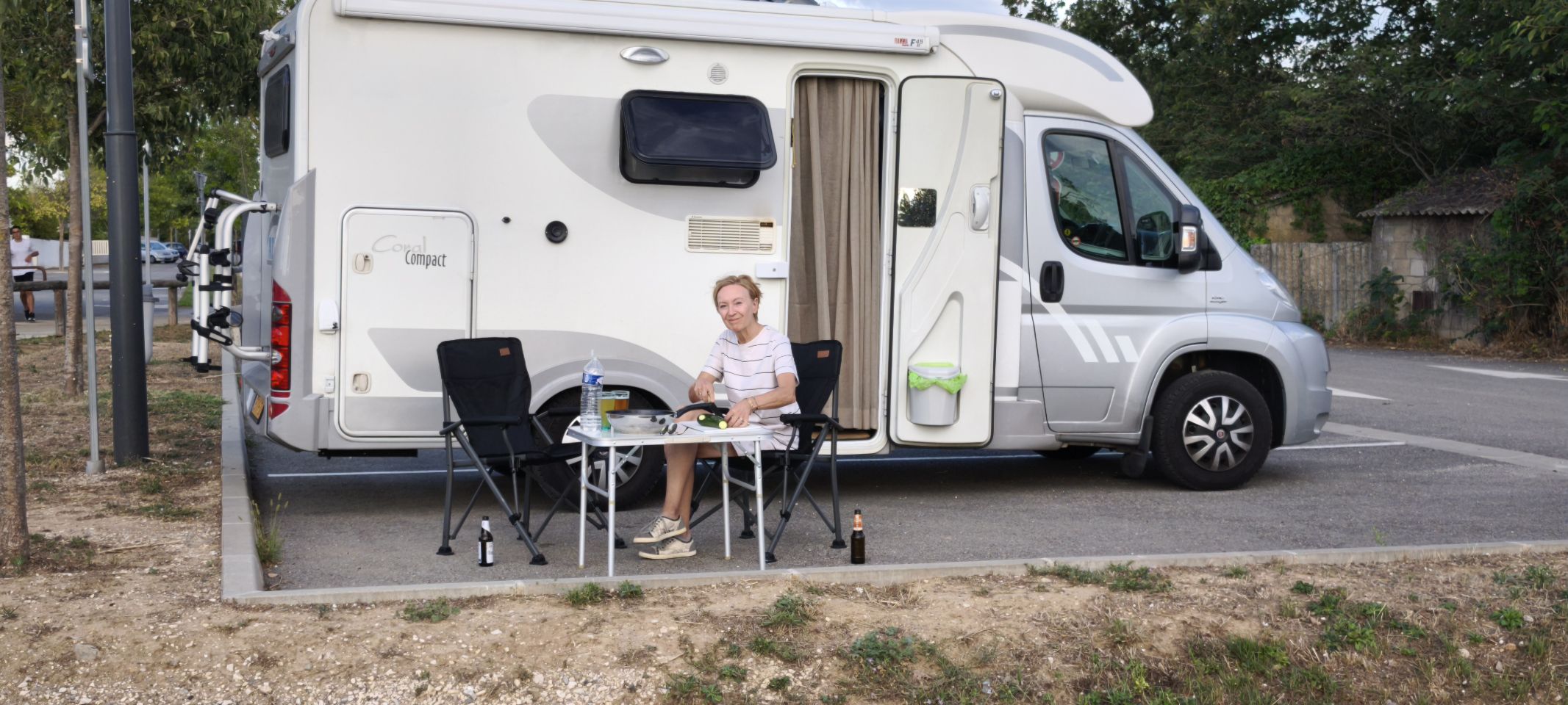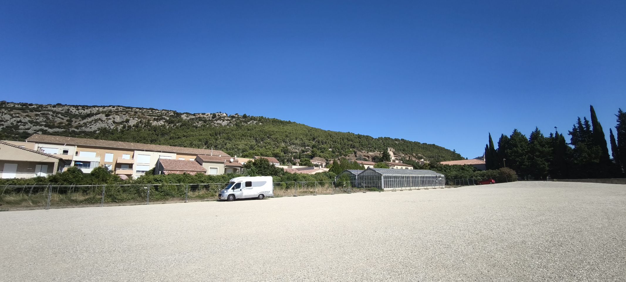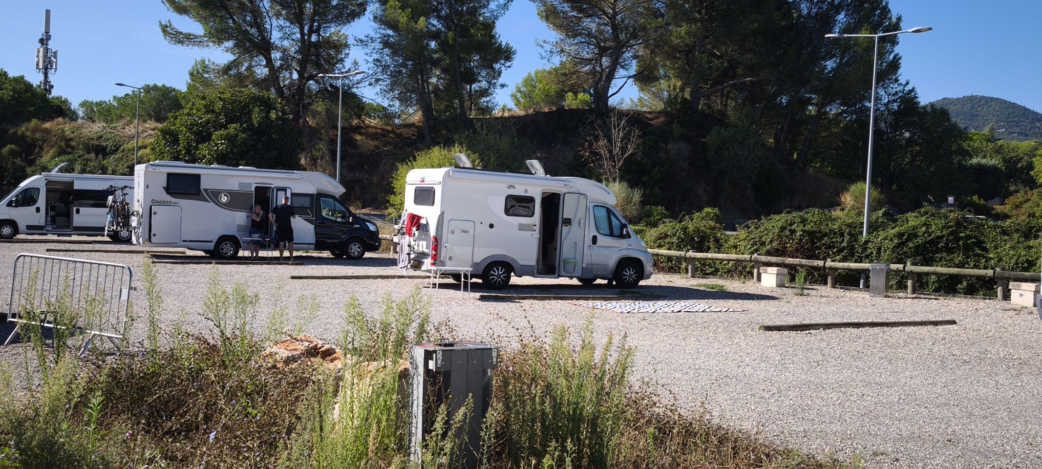 Op nieuwe camperplek een stokbroodje en een Beaumes-de-Venise: 🥖🍷!