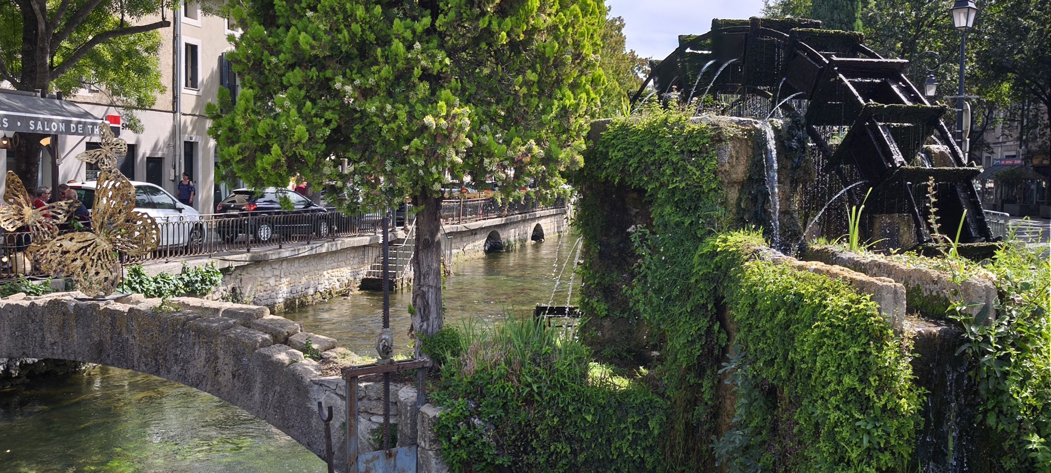 L’Isle sur la Sorgue is een leuk stadje aan de stromende rivier. Gezellige straatjes, leuke boetiekjes en restaurantjes. Heerlijke lunch!