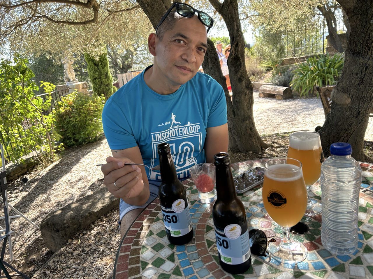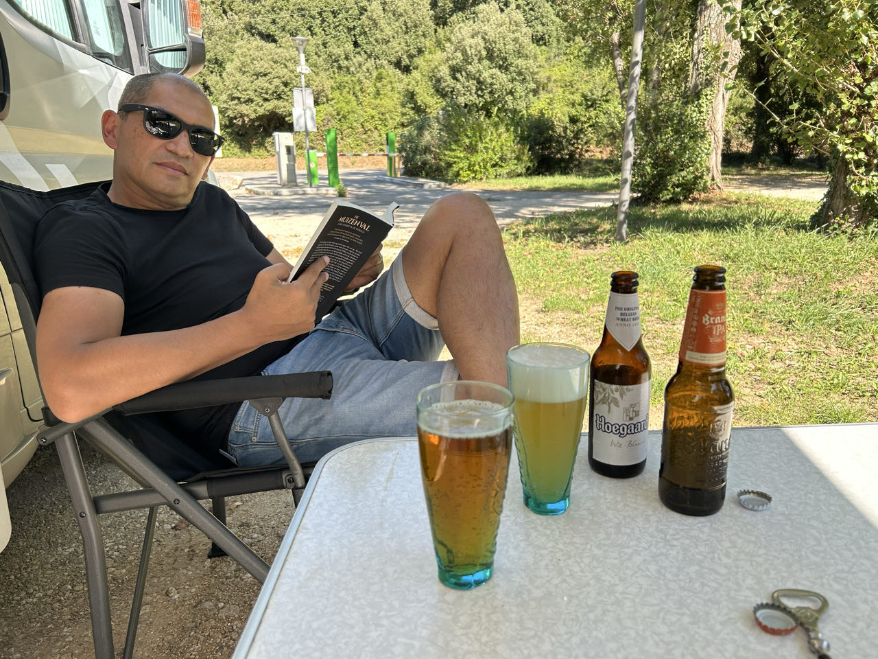 Al een beetje op de terugweg zoeken we een plekje waar we lekker in de zon kunnen zitten met boekje, muziekje, biertje.
